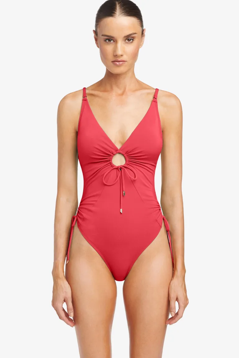 – V-Neck One Piece With Front Adjustable Keyhole– Removable Cups